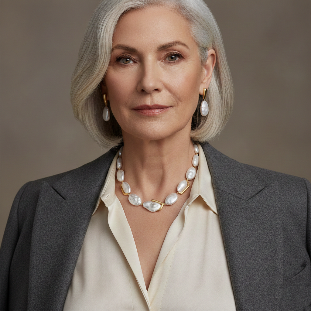 The pearls are always timeless, particularly the contemporary styling to give a fresh and nonchalant feel. Their matte luster flatter mature skin and adds silent simplicity to staple and professional outfits.
