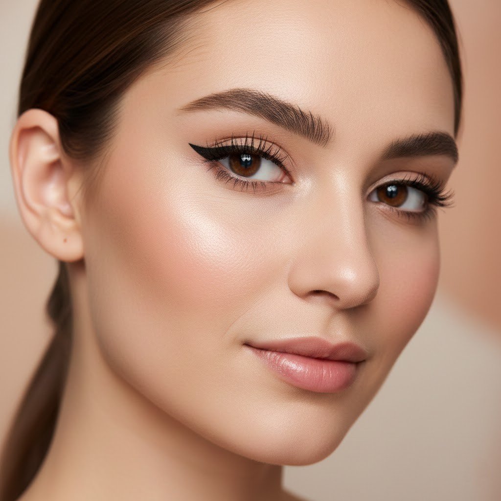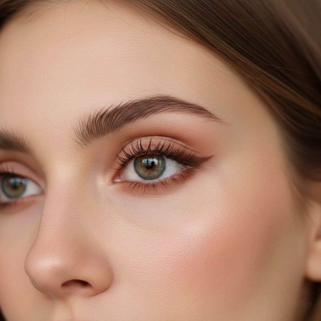 You lightly link the upper line to the bottom lashes at the outer side. This keeps the eye looking smooth, adds just enough outline, and stops the makeup from feeling dark or thick at all.
