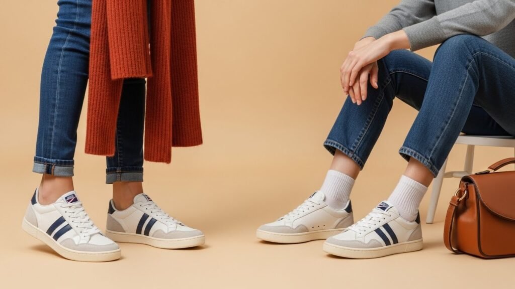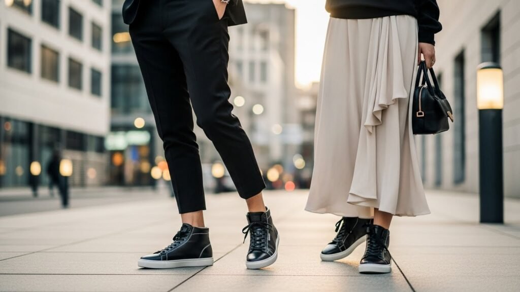 Light colors such as beige, cream, and dull gray are gaining popularity in the wardrobes since they fit with customizable trousers, flowing skirts, as well as structured outer clothes perfectly. These plain sneakers form a sophisticated background on which outfits seem meaningful and sophisticated instead of casual and sporty.