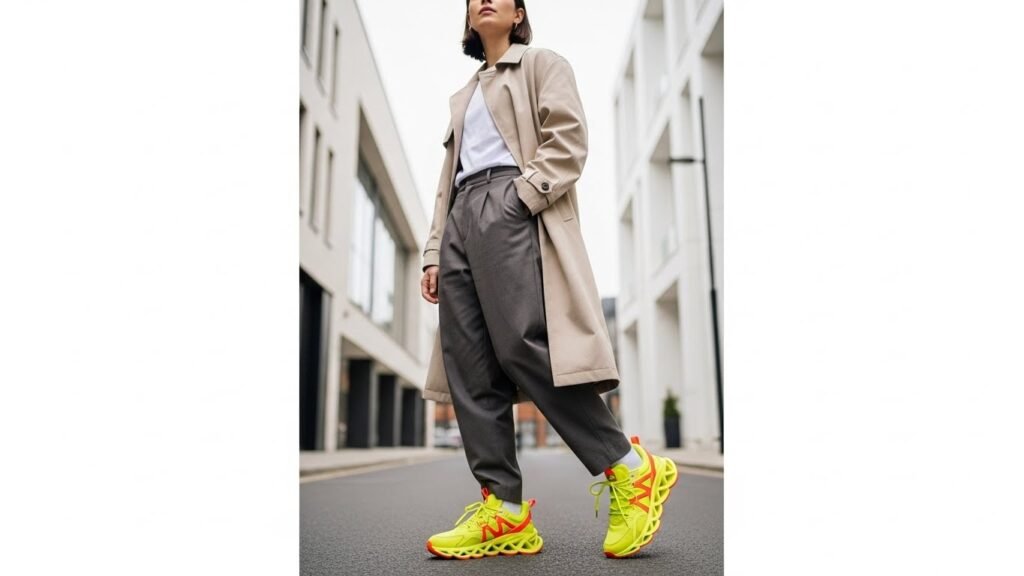 Sneakers in bright colors are also being used as accent to otherwise neutral outfits, and giving them a personality without clogging the look. This trend provides freedom of expression as well as maintaining the balance of the entire outfit to make it wearable.