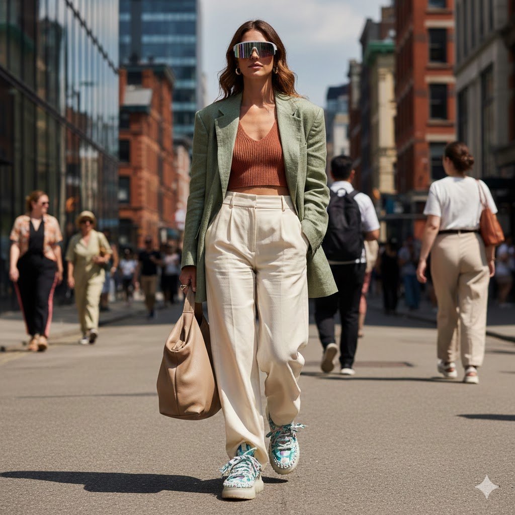 Sneakers in bright colors are also being used as accent to otherwise neutral outfits, and giving them a personality without clogging the look. This trend provides freedom of expression as well as maintaining the balance of the entire outfit to make it wearable.